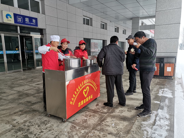 对服务区主要通道、公共卫生间前人行通道等重点区域进行了集中清理,并加大保安指挥引导车辆力度。在做好除雪保畅工作的同时,绥德服务区组织开展志愿服务工作,最大限度的调配志愿者为滞留司乘人员免费提供稀饭、热水、路况咨询等暖心服务,为广大司乘排忧解难,让司乘感受到在服务区大雪不寒冷。