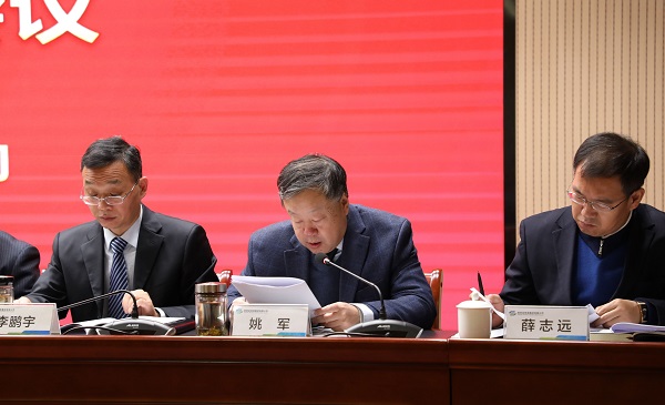 在分析了当前面临的形势后,他指出,2020年,要以习近平新时代中国特色社会主义思想为指导,全面贯彻落实党的十九大和十九届二中、三中、四中全会精神,按照省委十三届六次全会安排部署,坚持稳中求进工作总基调,坚持高质量发展理念,树牢“稳增长”和“防风险”双底线思维,切实发挥党建引领作用,有序推进铁路项目建设,努力提高经营开发质效,全面加强安全质量管理,着力提升企业治理能力,奋力开创铁路集团高质量发展新局面,为建设“交通强省”、发展“三个经济”、决胜全面建设小康社会提供更加坚强有力的铁路运输保障。