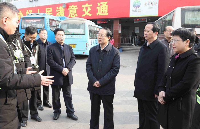 1月21日,厅党组书记、厅长杨育生在副厅长戴滨华、西安市副市长马鲜萍、市交通运输局局长张健和厅直相关单位、厅机关有关处室负责同志陪同下,先后检查了西安市城西客运站、西安北至机场城际铁路、省西安汽车站春运工作。