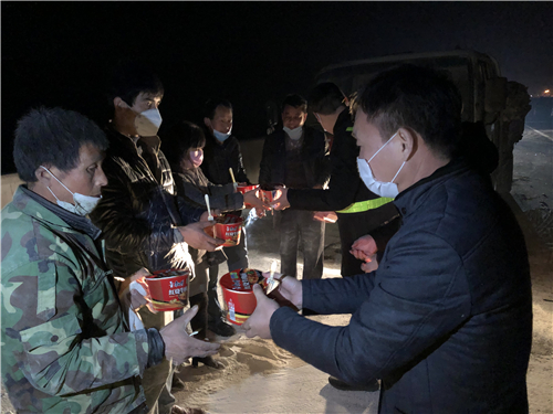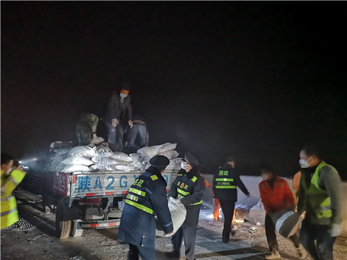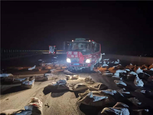 2月11日晚19:54分,西咸北环高速公路上行k60+200处,两辆货车发生交通追尾事故,运送货物散落一地,经核查该起事故中的两辆货车均为防疫物资运输车辆,分别运输面粉(运输路线富平至礼泉)和纺织物品原材料(运输路线浙江湖州至新疆)。事故发生后,西咸北环分公司立即启动交通事故应急处理预案,应急突击队和值班人员迅速赶赴事故现场组织人员进行施救,路政人员对事故现场摆放锥形桶进行有效隔离,指挥过往车辆绕行,避免二次事故的发生,同时,立即联系交警、通知养护工队、联系货运车辆倒运防疫物资,清理事故现场。在救援过程中,得知司机师傅星夜兼程,还没来得及吃晚饭,西咸北环分公司及时送上了泡面、热馒头、饮品及口罩等。