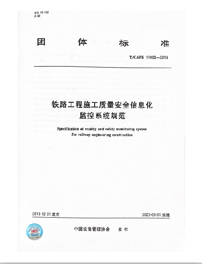 近日,由陕西省铁路集团有限公司、陕西西韩城际铁路有限公司、长安大学负责起草的团体标准《铁路工程施工质量安全信息化监控系统规范》由中国设备管理协会印发实施。