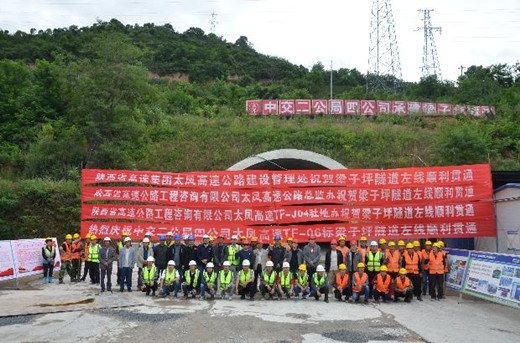梁子坪隧道位于宝鸡市凤县县城西北,是太凤高速公路重点控制性工程,该隧道设计为分离式双向四车道特长隧道,左幅长4640米,其中Ⅳ级围岩4369米、Ⅴ级围岩271米,最大埋深384米,采用双向掘进。自2018年5月20日进洞以来,管理处针对工期紧的情况,下达专项考核计划任务,督促施工单位加大投入,优化施工组织,全周期掀起施工大干,实现了各项工作均衡推进。全体参建人员严格执行“短进尺、弱爆破、强支护、勤量测、快封闭”的原则,采取有力措施,克服隧道围岩差、前期临时用电问题、原材料供应紧张、施工场地狭小等不利因素,历经749天奋战,实现了左洞贯通。