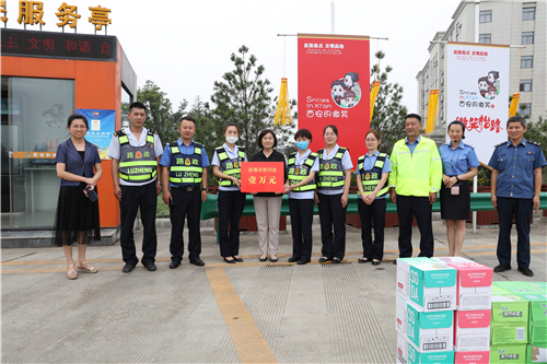慰问组一行先后抵达沣京服务区、大王收费站,同一线从业人员亲切交谈,详细向大家了解疫情期间日常工作开展情况、存在困难和问题,关切询问大家生活与身体状况,提醒大家一定做好疫情防护工作,多举措提升防暑降温能力,注意身体健康和生产安全,并将10000元的慰问金、西瓜、饮料等防暑物品送到职工手中,将上级关怀送达一线。