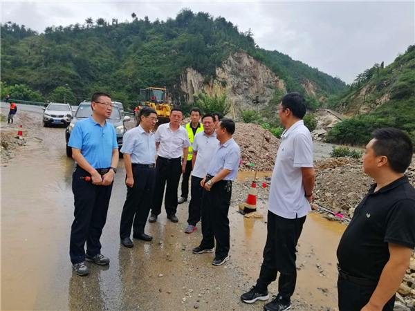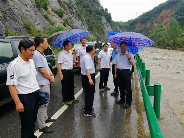 万振江冒雨沿242国道查看汛情以及公路交通受损情况。随后就近在洛南公路段石门道班召开会议,听取洛南县、商洛公路局、市交通运输局查灾救灾情况汇报。他强调,要站在讲政治的高度,切实提高认识,压实责任,加强指挥调度。要迅速安排技术力量翻山绕行、深入灾毁路段,尽快摸清灾毁详情。要按照“先通后畅”的原则,完善抢险抢通方案,上足抢险队伍和机械设备,并尽量与灾后公路修复相结合,提高资金使用效益,于10日内抢通242国道石门至黄龙铺段,打通生命线,保障域内群众和企业抗灾救灾急需。