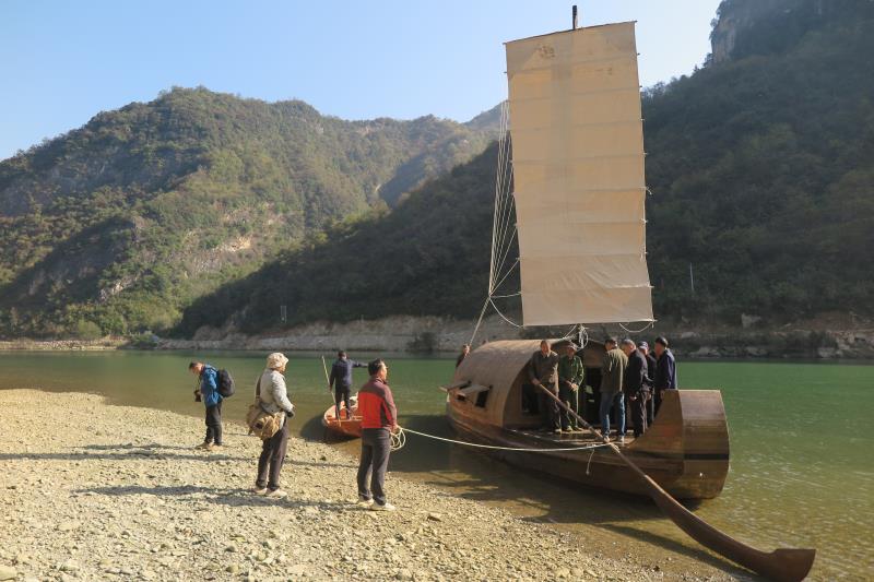 11月7日,在完成汉江襄阳至谷城汉江段,谷城至大谷峪南河段调查后,在汉江南河大谷峪进行了木帆船首航仪式。