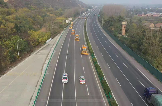 冬季恶劣天造成连霍高速豫陕交界出现持续性降雪,路面积雪导致车辆无法通行,面对雪情,两省道路管理人员迅速互通信息,发起联合除雪作业命令,由三门峡分公司组成的抢险队伍及车辆迅速从豫灵收费站上道向西开始连霍高速右幅路面除雪作业,由西渭分公司组成的抢险队伍及车辆同时于港口收费站上道向东开始连霍高速左幅路面除雪作业,为保障除雪作业有序开展,由两省路政、高交组成的监护车队分别于除雪车辆前后方同时监管,前方引导作业车辆有序行驶,后方监护社会车辆缓慢通行,为除雪作业创造有利环境,保障车辆及人员安全。