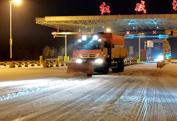 此次除雪保畅,累计投入除雪车7台,人工160人,撒布融雪剂93吨。