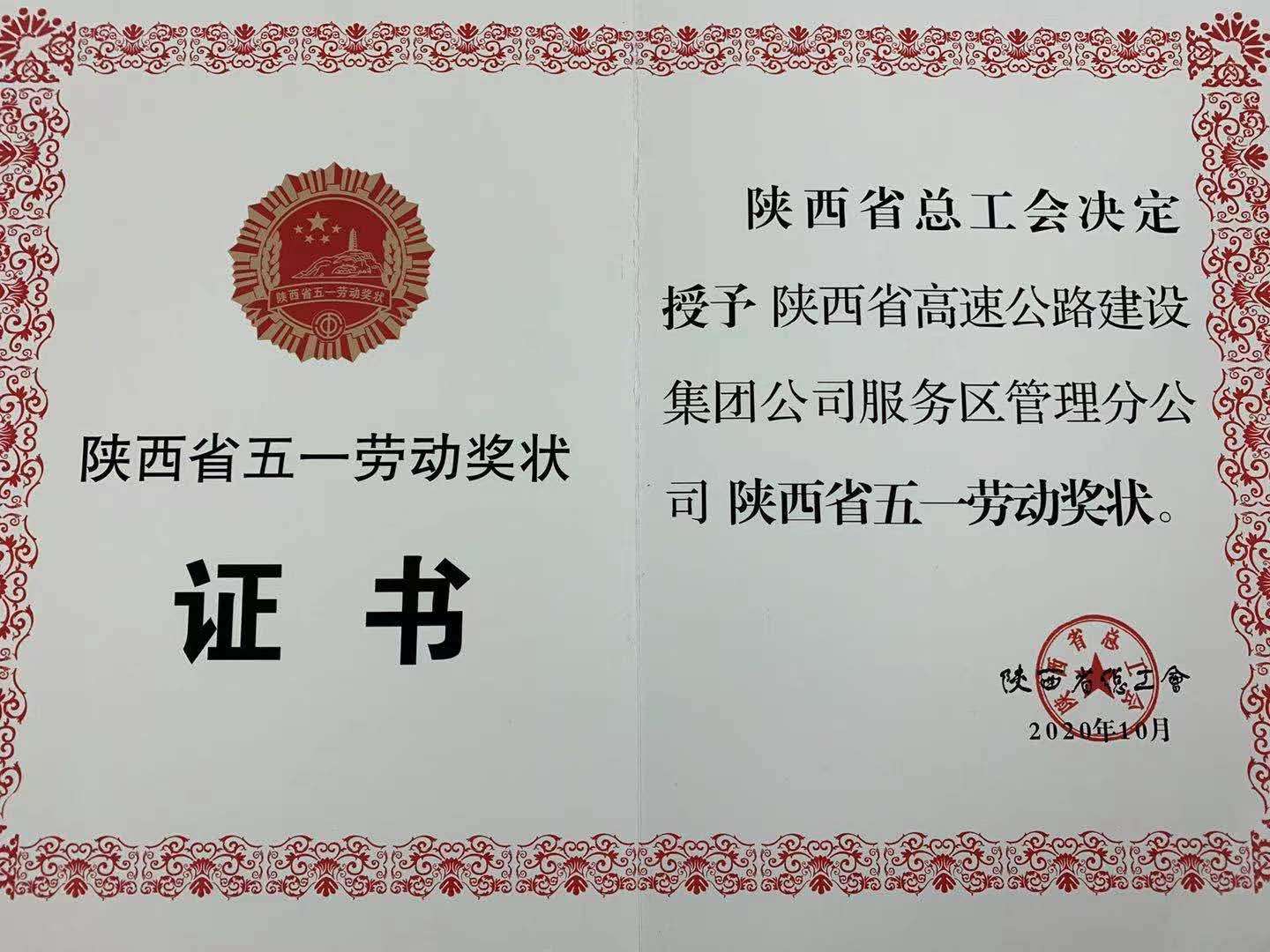 2020年12月14日上午,陕西省三秦工匠、五一劳动奖表彰大会在陕西宾馆陕西大会堂召开。陕西省高速公路建设集团公司服务区管理分公司荣获陕西省五一劳动奖状,服务分公司经理苟睿代表公司参会。
