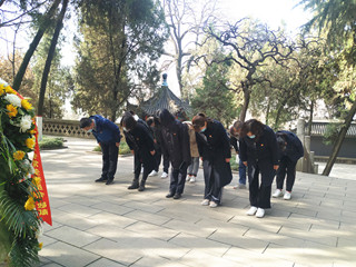 西镇分公司党团员们怀着无比崇敬心情,井然有序列队进入杨虎城将军烈士陵园,拾阶而上,神情肃穆,来到杨虎城将军墓前,向杨虎城将军及安葬在这里的其他烈士深深三鞠躬,并绕着将军陵墓一周。