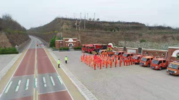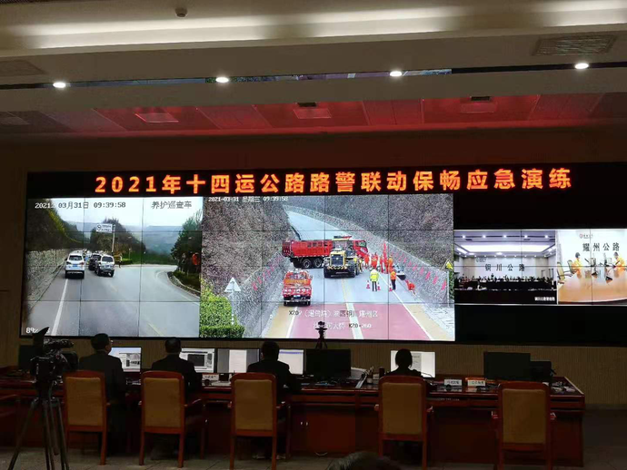 为全力做好十四运公路交通保障工作, 3月31日,铜川公路管理局联合铜川市公安局交警支队、铜川市交通运输综合执法支队、铜川市公路管理处举办2021年十四运公路路警联动保畅应急演练。铜川公路管理局党委书记、局长寇军平、副局长李进成、市交警支队副支队长胡增发统一指挥调度联合应急演练。