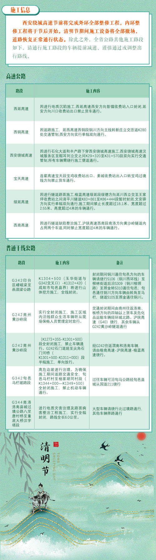 2021年清明节陕西省公路网出行温馨提示