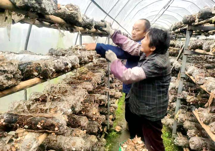 群众在香菇基地采摘香菇