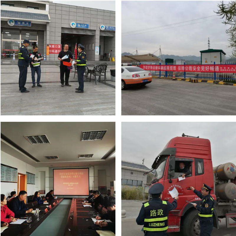 图为总队第六支队深入高速公路收费站外广场、服务区、加油站等地,在醒目位置悬挂宣传标语,向过往司乘和广大民众发放宣传资料,设立固定宣传服务点答疑解惑,详细宣传《治超条例》及相关法律法规,教育引导广大司乘进一步理解和支持治超工作,自觉守法运输。截至目前,共出动宣传车6台次,投入宣传人员60余人次,设置咨询台4处,悬挂宣传横幅6条,发放宣传单1000余份,解答群众咨询120余人次。