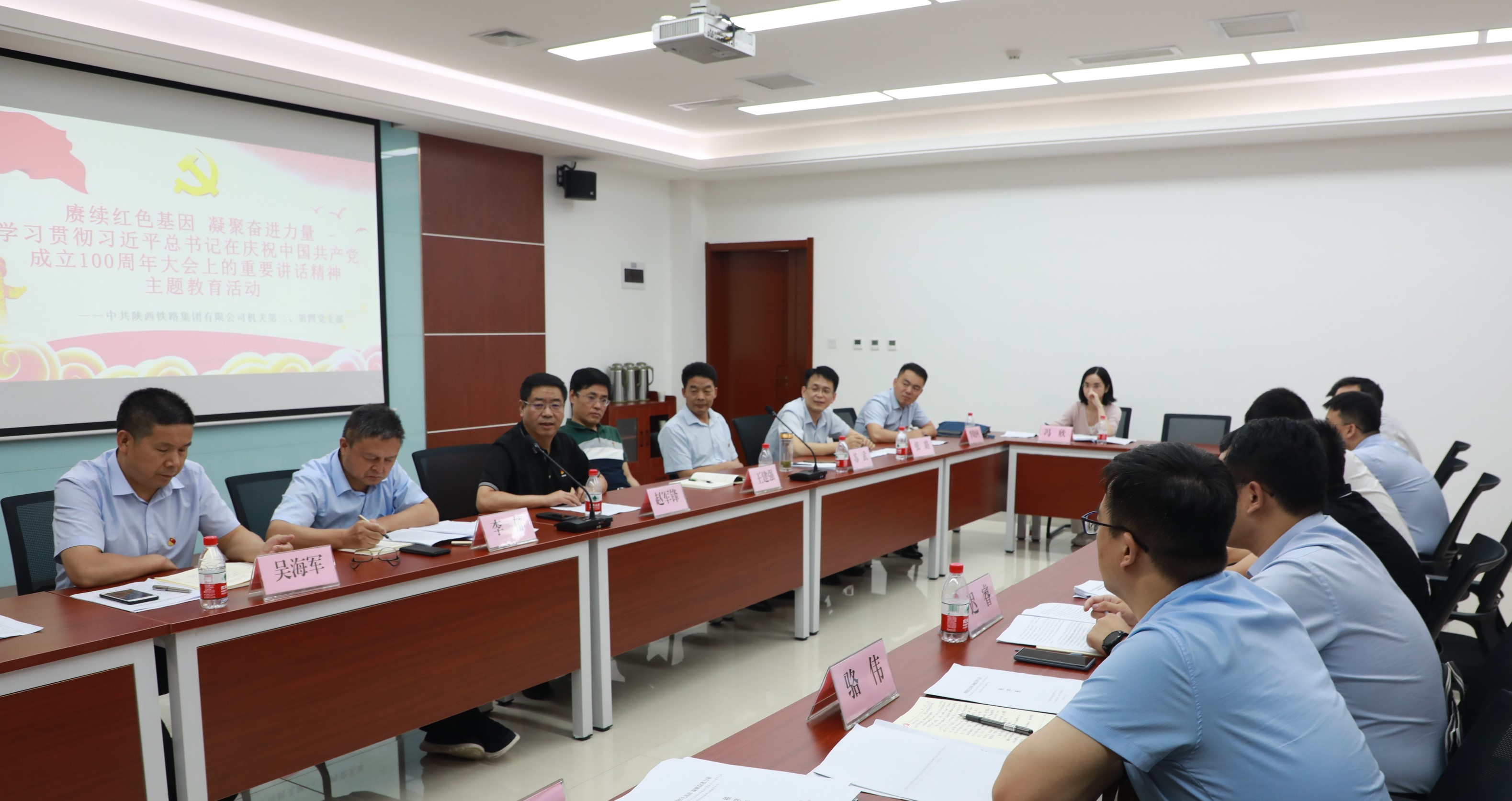 7月9日,铁路集团机关二、四支部联合组织召开学习贯彻习近平总书记“七一“重要讲话精神研学座谈会,铁路集团党委副书记、副董事长、总经理赵军锋,党委委员、董事、副总经理王建强,及支部全体党员同志参加并依次发言。