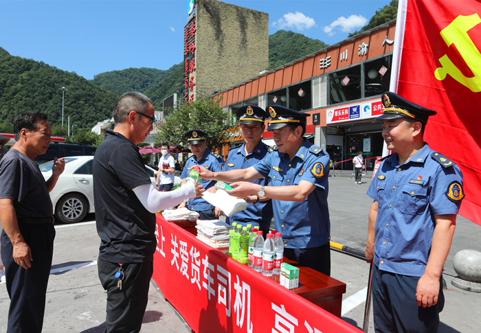 (图为总队第十支队在丹凤服务区为货车司机“送清凉”)
