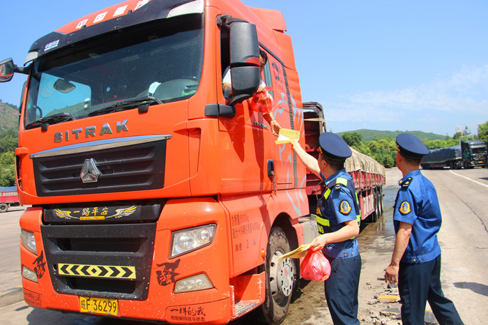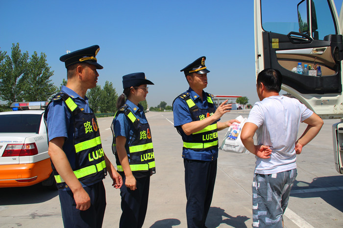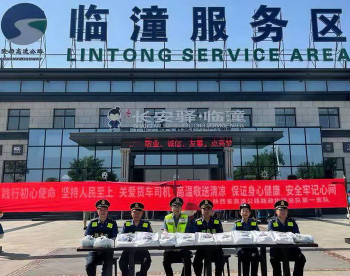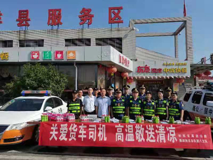 (图为总队第一支队在临潼服务区为货车司机“送清凉”)