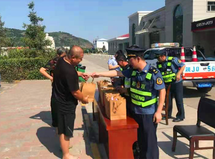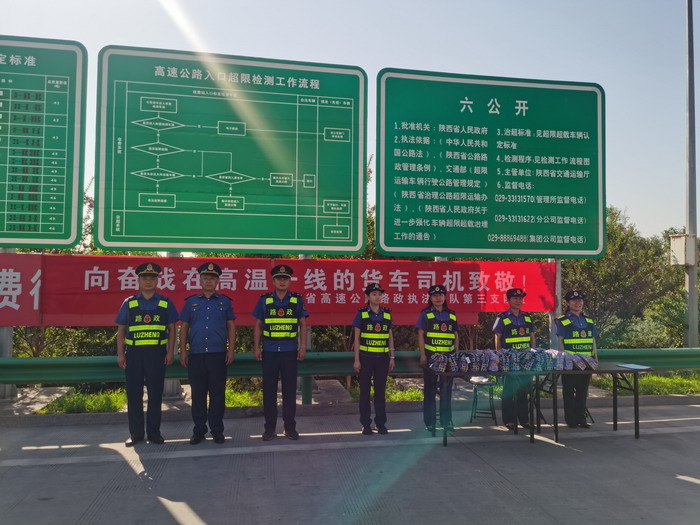 (图为总队第三支队在咸阳北收费站外广场为货车司机“送清凉”)