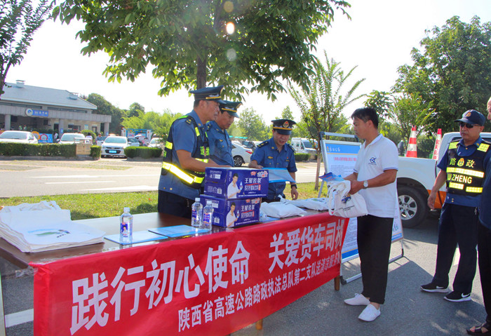 (图为总队第二支队在眉县服务区为货车司机“送清凉”)