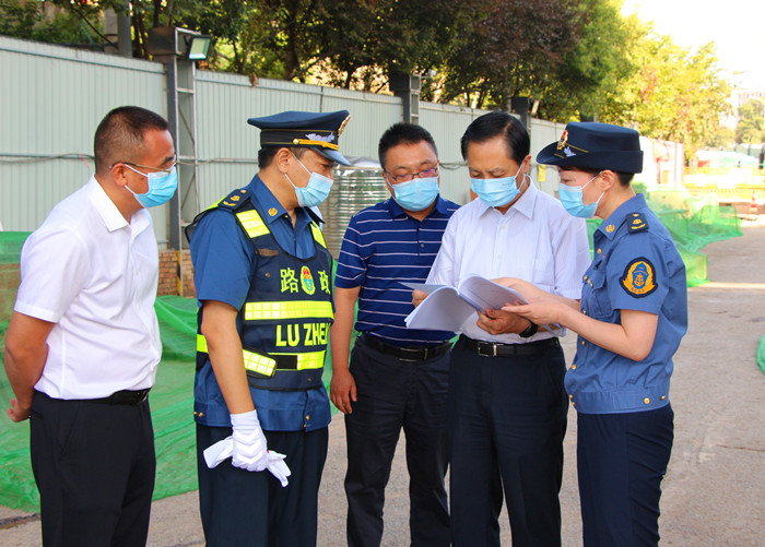 8月6日上午,省交通运输厅党组书记、厅长夏晓中带领厅综合行政执法局、公路管理处、行政审批处等有关部门负责人,深入西安绕城高速公路浐河特大桥下一处违法涉路施工现场,对高速路政执法工作进行调研。省路政执法总队总队长陈拴会、副总队长张惠萍等人陪同调研。