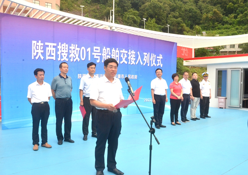 8月19日,“陕西搜救01号”打捞船和船员培训考试船“滨江号”交接入列仪式在安康瀛湖举行。省交通运输厅党组成员、副厅长万振江出席仪式并宣布船舶入列,市委常委、副市长刘建平致辞。