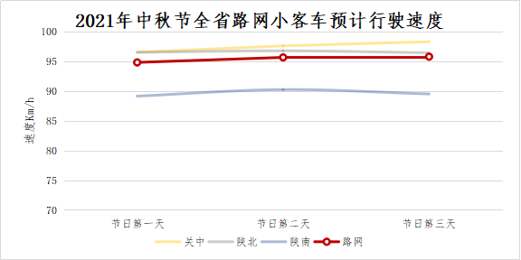 节日期间,预计全省高速公路小客车行驶速度不会受到天气变化及流量增长直接影响,全路网平均行驶速度仍会达到95Km/h以上。