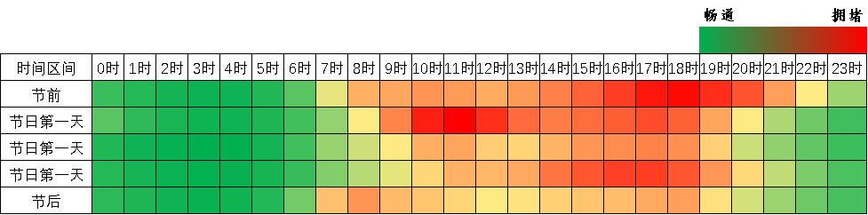 建议公众出行前规划好出行时间和线路,错峰错时出行,及时了解流量较大路段的路况信息,发现拥堵时可选择其他高速公路或利用并行普通干线公路进行绕行。