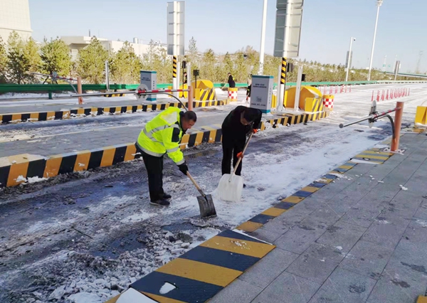 一是科学开展除雪作业。分公司坚持以“机械为主、人工为辅”的除雪方式,积雪路段采取除雪机械阶梯式作业方式,结冰路段采取少量撒布融雪剂举措,及时将主线路面积雪铲除,桥面及跨线桥底结冰消融。同时,利用除雪车对较大的榆林北收费站内外广场进行机械清雪,其他收费站组织人工清除积雪。二是有序放行车辆通行。路政部门与高交部门在护航主线除雪保畅过程中,及时分析研判公路通行条件,结合天气情况,采取先间段放行货车,后小客车恢复通行的举措,保障了高速公路正常有序通行。三是热心做好文明服务。针对收费站临时交通管制部分货车排队等候通行,各收费站在做好路况咨询的同时,积极开展便民服务和志愿服务工作,热心为滞留司乘人员送去饺子、简餐、方便面、热水等,并在便民服务亭提供充电、取暖、休息等服务,真正让滞留司乘人员堵车不堵心,在寒冬里感受到家一般的温暖。同时,主动关爱驻扎收费站一线疫情防控人员,并为他们送上温暖的热餐。