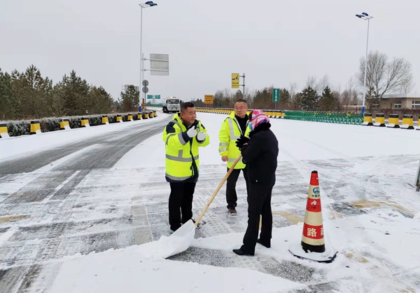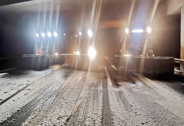 8日上午,分公司在7日除雪保畅的基础上,领导班子分两路现场靠前指挥,进一步加大机械、人工投入,强化路警联勤联动,采用除雪车连续交替和并列作业模式,重点铲除主线积雪,并对所辖路段长大桥梁、坡道及积雪较厚路段撒布融雪剂。积极组织人工全面清除桥梁、跨线桥底、互通匝道及收费广场积雪,确保公路及时恢复通行。同时,通过路警制式车辆压速带道通行和间断优先放行货车通行的方式,保障除雪工作快速开展,疏导主线过往车辆安全通行。
