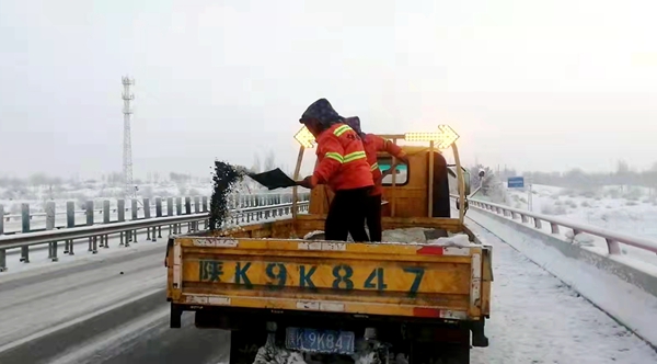 12月7日—8日,榆靖分公司快速应对新一轮降雪,昼夜奋战除雪保畅保通工作,公路积雪结冰及时清除,公路恢复正常通行。
