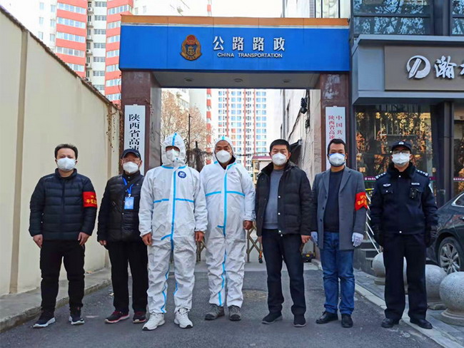 疫情就是命令,防控就是责任。当前,西安市疫情防控正处于胶着期、窗口期,且时值寒冬,防控工作环境条件艰苦。为全力支持西安市做好疫情防控工作,12月28日晚,接到省交通运输厅通知后,省路政执法总队迅速传达部署,总队机关和总队第一、第十一支队党员干部积极踊跃报名,迅速组建了一支11人的社区志愿者队伍,于12月29日上午八点全部下沉社区抗疫一线,参与社区值守执勤、核酸检测、物资配送、秩序维护、扶老助弱等工作,全力配合打赢疫情防控阻击战、歼灭战!
