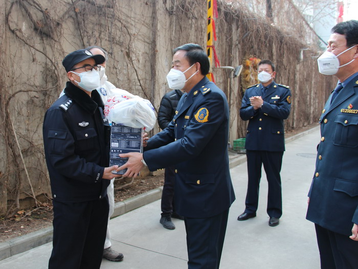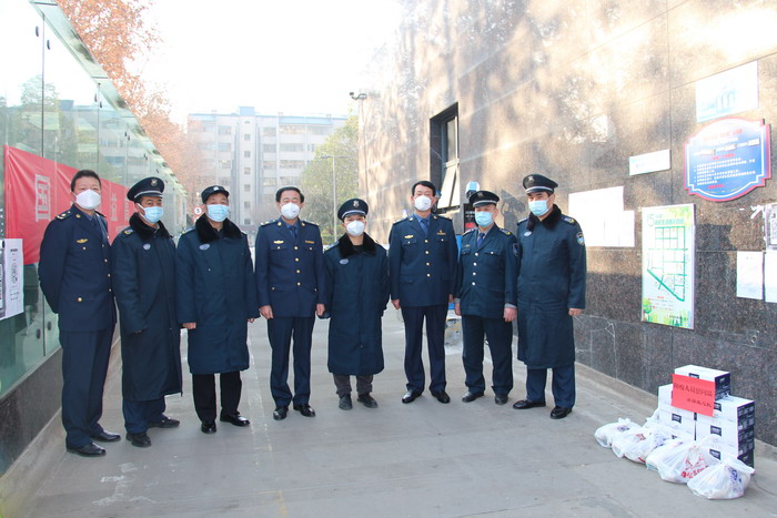 2022年元旦,新年第一天。省路政执法总队党委书记、总队长陈拴会带领班子成员前往白庙社区白云小区、友谊西路352号、友谊西路300号小区,看望慰问辛勤奋战在抗疫一线的下沉干部、防疫人员、公安干警、社区工作者,向他们致以新年的祝福,转达厅党组、厅直机关党委和交通运输工会对大家的关怀和问候,并送上慰问品和慰问金。