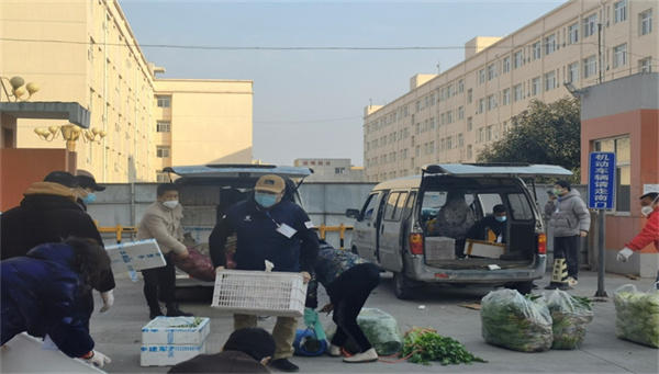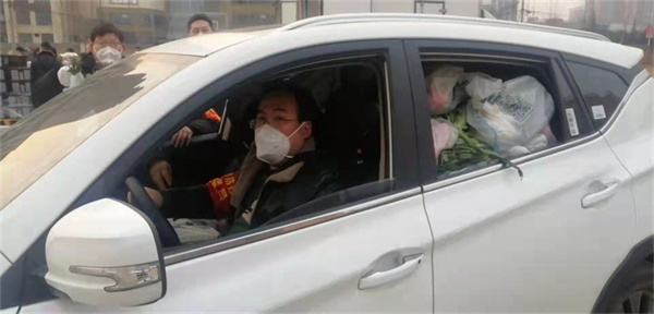 图为陕西省高速公路收费中心党员发展对象王金同志在为小区居民配送物资、社区消杀,他用私家车完成了662户居民的蔬菜配送任务。