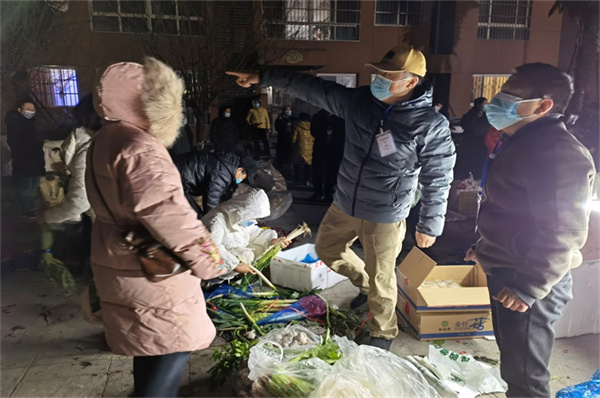 图为陕西高速公路电子收费公司党员干部陈锐齐同志在为小区居民配送物资、扶老助弱。
