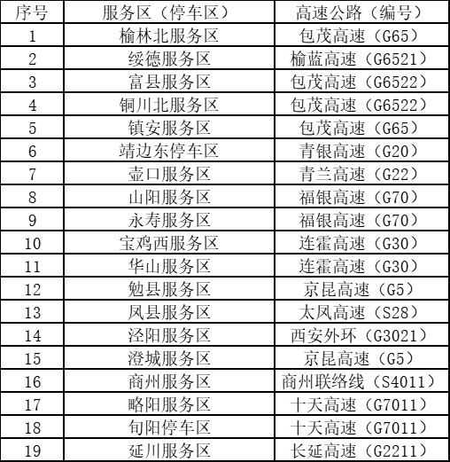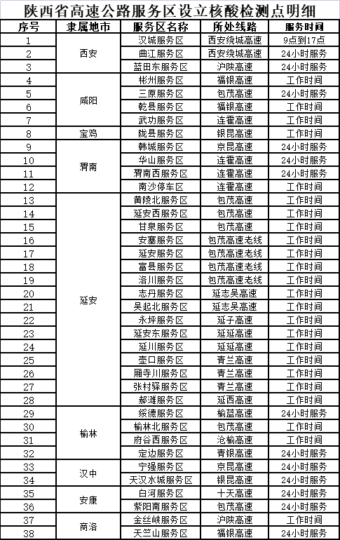11、陕西省高速公路哪些服务区可以进行核酸检测?
