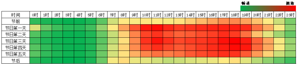 建议公众出行前规划好出行时间和线路,错峰错时出行,及时了解流量较大路段的路况信息,发现拥堵时可选择其他高速公路或利用并行普通干线公路进行绕行。