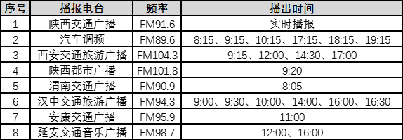 节日期间,陕西交通服务热线(12328&12122)24小时提供热线电话服务,每日定时与省内多家广播电台播报即时路况,并通过“陕西高速”APP、头条号,“陕西交通12122”微博、微信,官方网站(http://jtyst.shaanxi.gov.cn/sfzx)等渠道发布相关出行信息。拨打029-12122或029-12328遇忙时,也可通过“陕西交通12122”微信服务号、新浪微博、“陕西12122”微信订阅号、“陕西高速”头条号及陕西省高速公路收费中心网站自助查询或咨询客服。