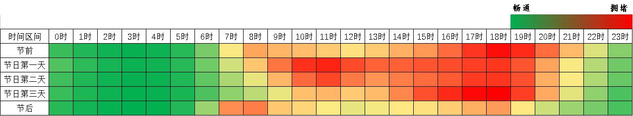 建议公众出行前规划好出行时间和线路,错峰错时出行,及时了解流量较大路段的路况信息,发现拥堵时可选择其他高速公路或利用并行普通干线公路进行绕行。