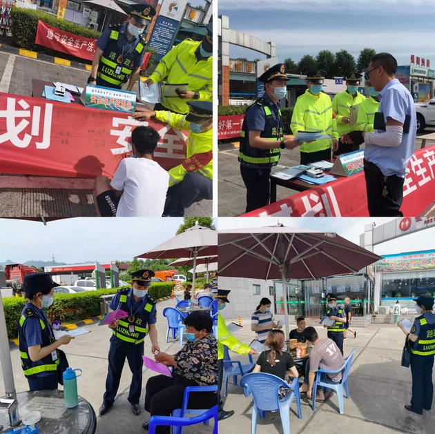 总队第九支队及所辖各大队充分利用联勤联动、“一路三方”工作机制,联合高速交警、运营分公司、属地政府部门等,深入社区、村镇、学校、施工现场等人员集散地开展形式多样的宣传活动。通过悬挂横幅、散发宣传材料、现场宣讲、有奖竞答等方式,宣讲《中华人民共和国安全生产法》《中华人民共和国公路法》等法律法规,宣传高速公路严禁事项、消防安全常识等,进一步引导人民群众树牢安全生产意识。